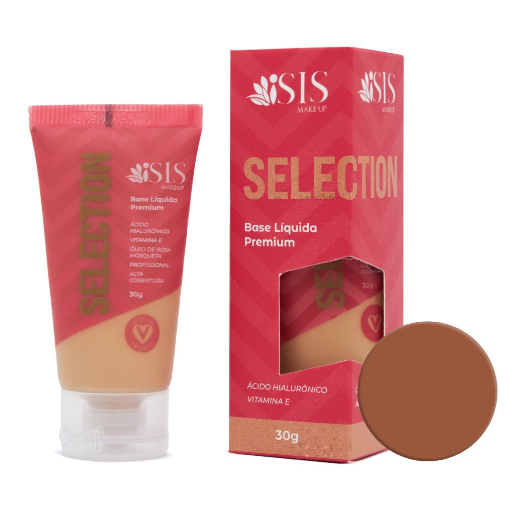 A Base Líquida Premium da Isis Make Up é formulada com Ácido Hialurônico, Vitamina E e Óleo de Rosa Mosqueta, proporcionando cobertura impecável e cuidado para a pele.